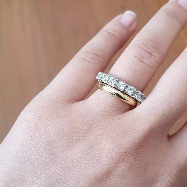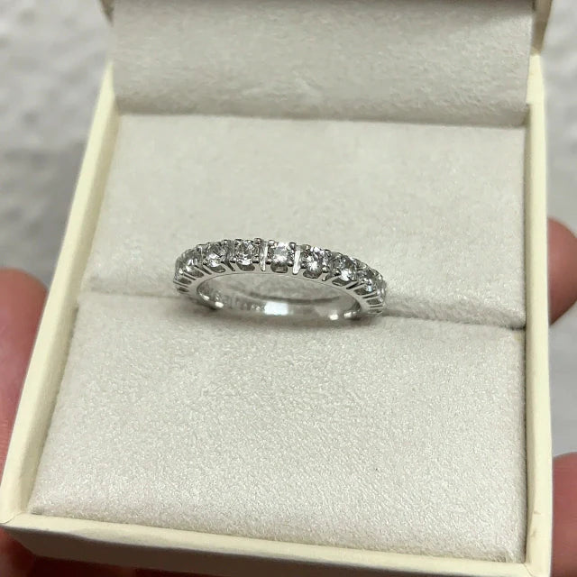 Anel em Prata 925 aliança inteira com topázios incolores naturais