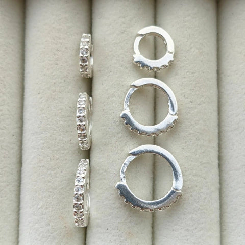 Trio de Argola Cravejado de Prata 925, vem com 3 peças lindas e com acabamento perfeito e com 2mm de espessura, o modelo tamanho P apresenta 8 milímetros, o modelo M apresenta 11 milímetros e o modelo tamanho G apresenta 13 milímetros, vem com o fecho de encaixe, além de ser feito com um material de excelente qualidade e durabilidade.