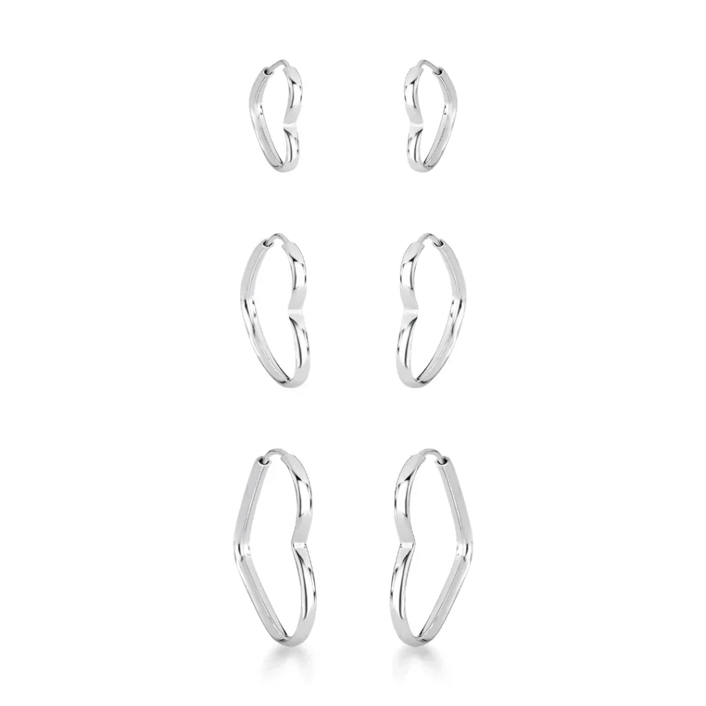 Trio de Argolas Coração Fio Abaulado de Prata 925, vem com 3 peças lindas e com acabamento perfeito e com 1,9mm de espessura, o modelo tamanho P apresenta 15 milímetros, o modelo M apresenta 19 milímetros e o modelo tamanho G apresenta 22 milímetros, vem com o fecho de encaixe, além de ser feito com um material de excelente qualidade e durabilidade.