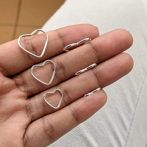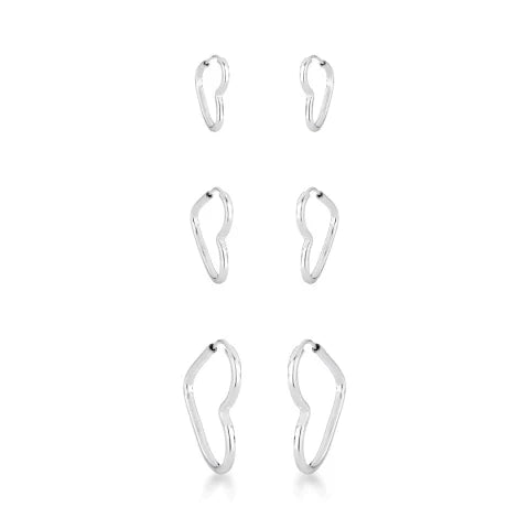 Trio de Argolas Coração Redondo de Prata 925, vem com 3 peças lindas e com acabamento perfeito e com 2mm de espessura, o modelo tamanho P apresenta 16 milímetros, o modelo M apresenta 19 milímetros e o modelo tamanho G apresenta 22 milímetros tem a largura de 3 milímetros, vem com o fecho de encaixe, além de ser feito com um material de excelente qualidade e durabilidade.