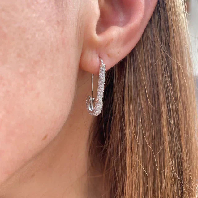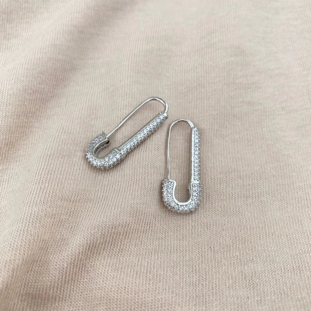 Brinco alfinete cravejado com zirconia com banho de ródio.