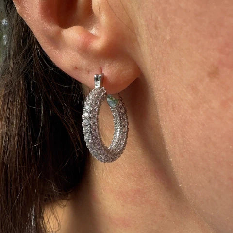 Brinco de argola cravejado com zircônia e com banho de ródio.