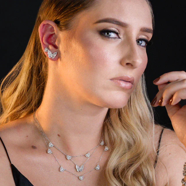 Brinco coração, micro cravado com zircônias, prata 925 com banho de ródio branco. Uma bela peça para compor com o colar 5 corações, prata 925