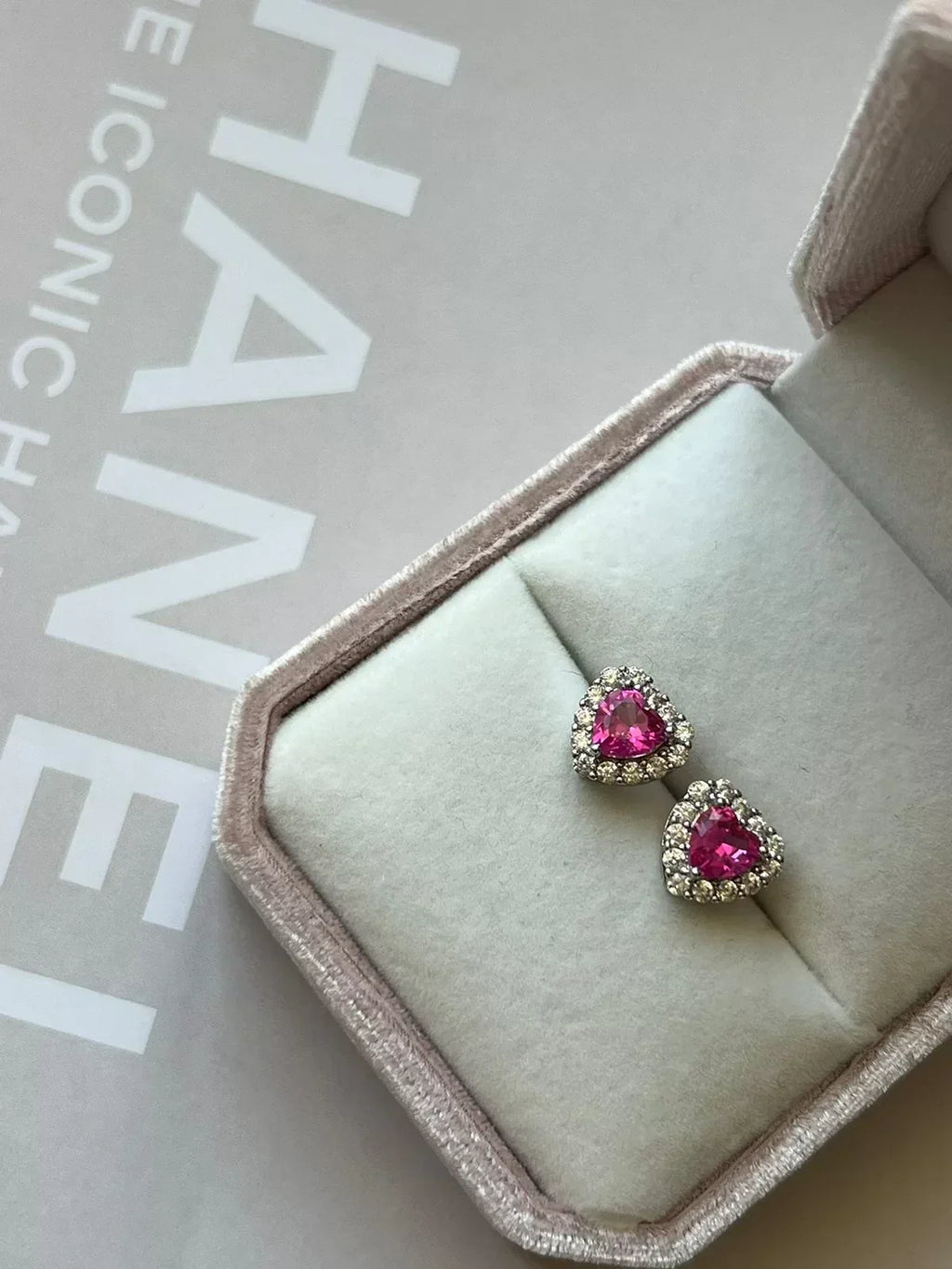 Brinco Coraçãozinho com Zircônia Pink e Cristal em Prata 925 de Ródio Branco