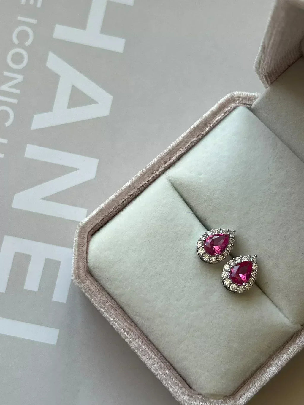 Brinco Gotinha com Zircônia Pink e Cristal em Banho de Ródio Branco