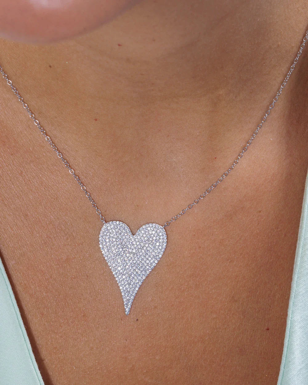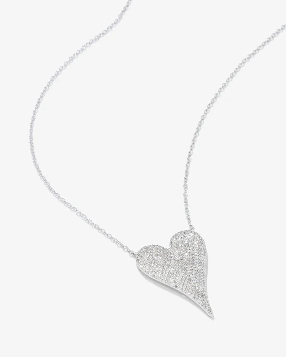 Com um design simples e apaixonante, este delicado colar exibe seu esplendor no grande e alongado Coração em Pavê de micro Zircônias Cristais. Uma peça em Prata 925 com banho de Ródio Branco.
