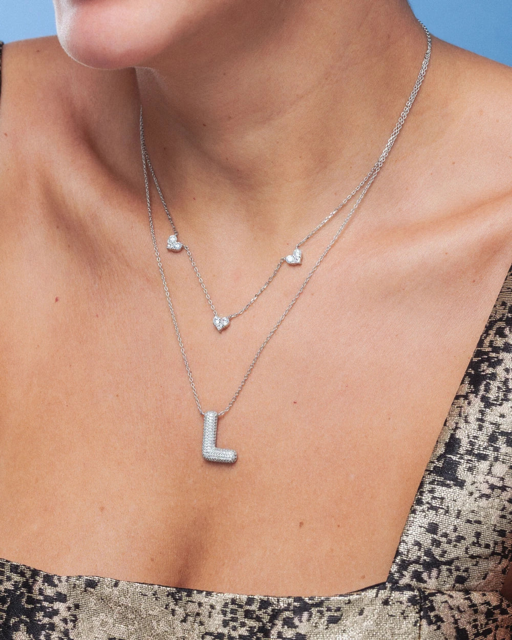 Colar delicado em prata 925 com banho de ródio branco, corrente de elos intercalados com três corações, na cravação de zircônias cristais.