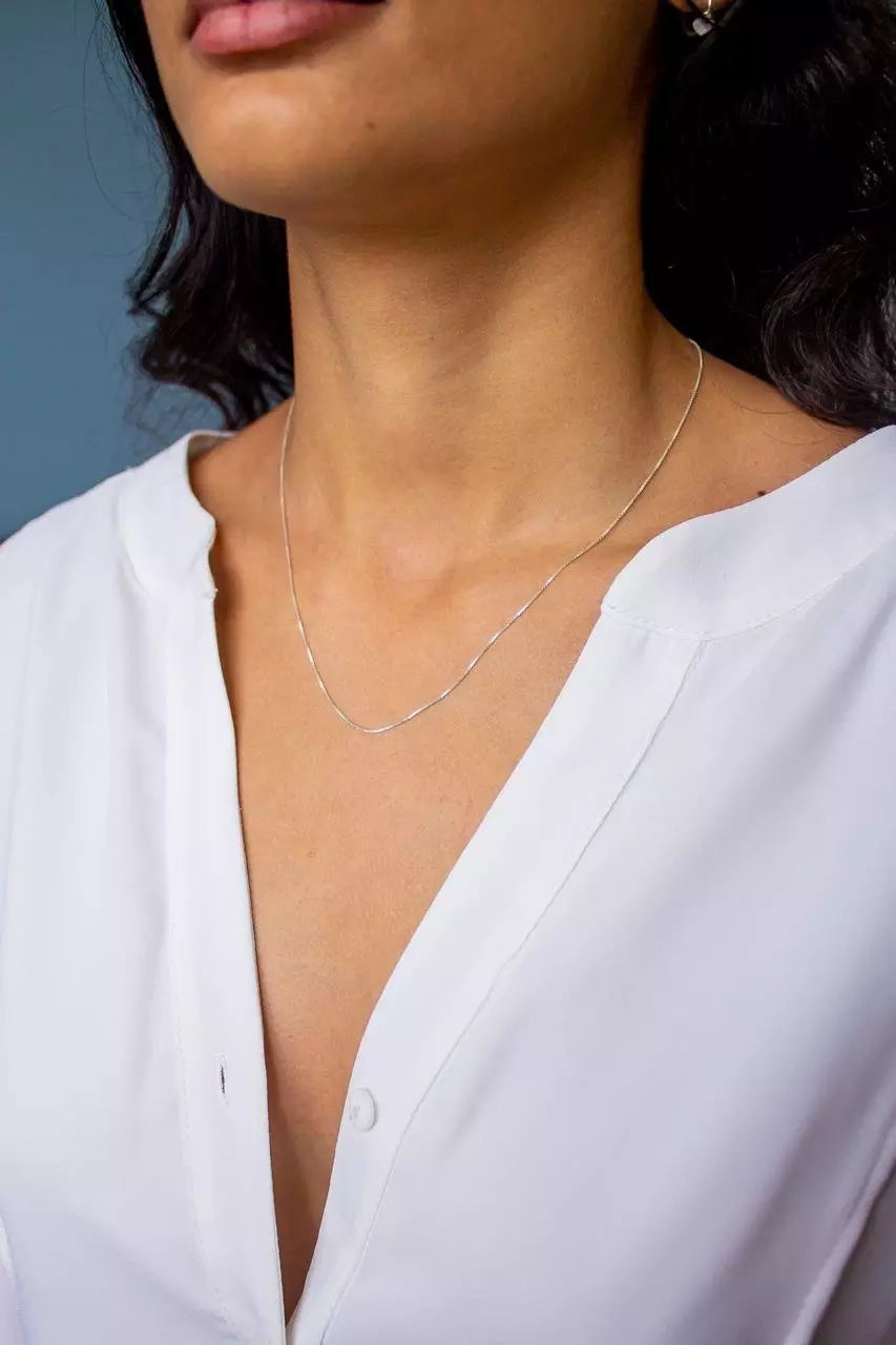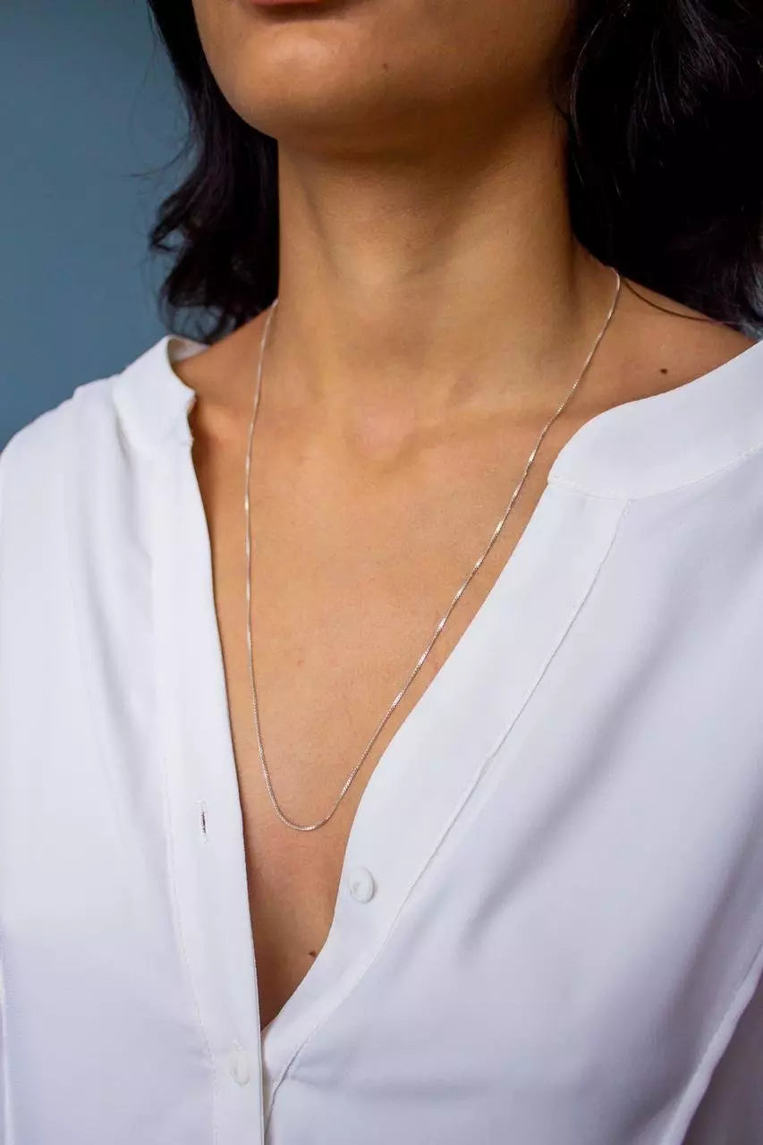 Uma corrente confeccionada em prata 925 e o certificado de autenticidade.