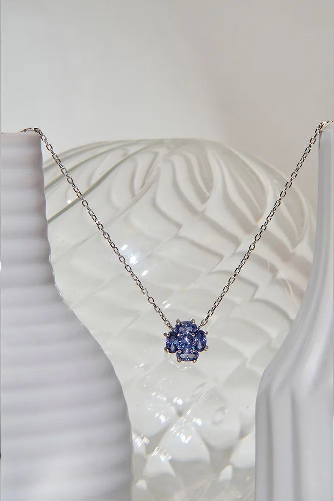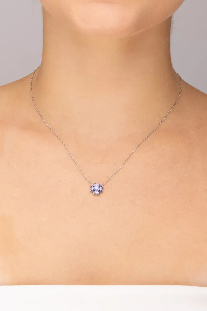 colar confeccionado em prata 925 com banho em ródio branco e zircônias tanzanita na lapidação oval e redonda