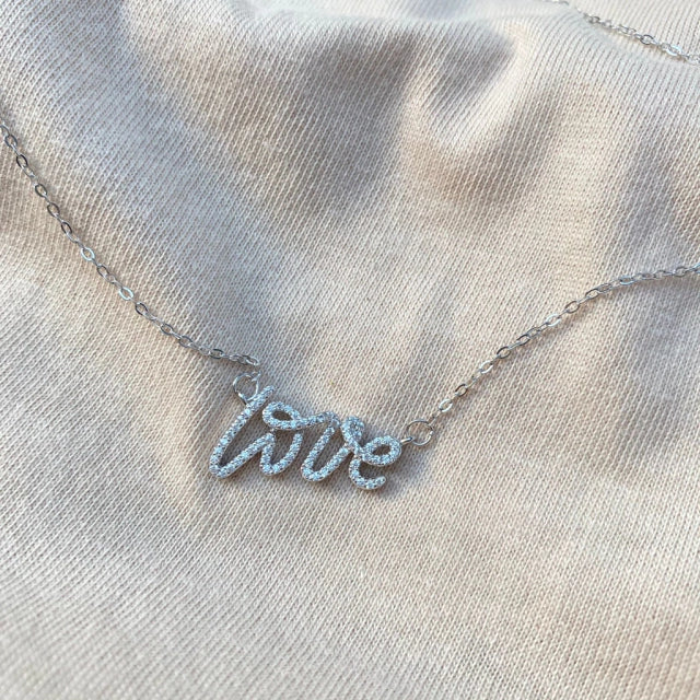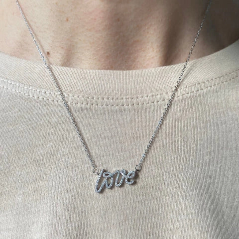 Colar em prata 925 com palavra love cravejado com zircônia.