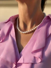 Colar confeccionado em prata 925 com banho de ródio branco, pérolas medindo 8mm.