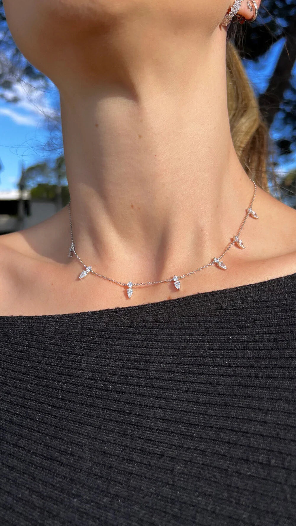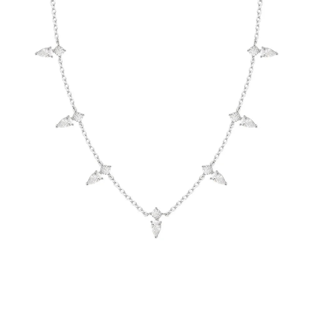 Colar 7 spikes cravejados em Zircônia incolor, confeccionado na Prata 925, no banho de ródio branco.