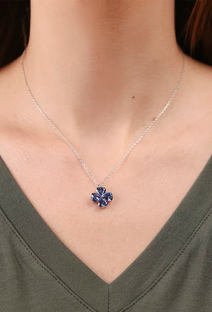 Colar Em Prata 925 Com Pingente Trevo tanzanita