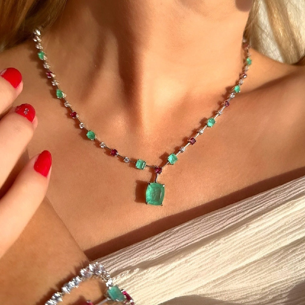 Colar Riviera Esmeralda Colombiana Fio Faca