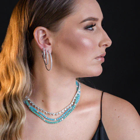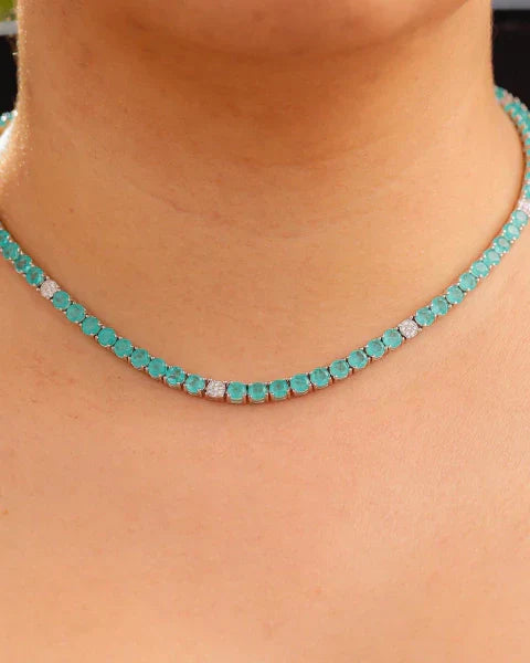 Colar riviera prata 925, pedra natural turmalina. Pedra de 5mm, com 4 garras. Com pontos de zircônia branca. Comprimento de 42cm.