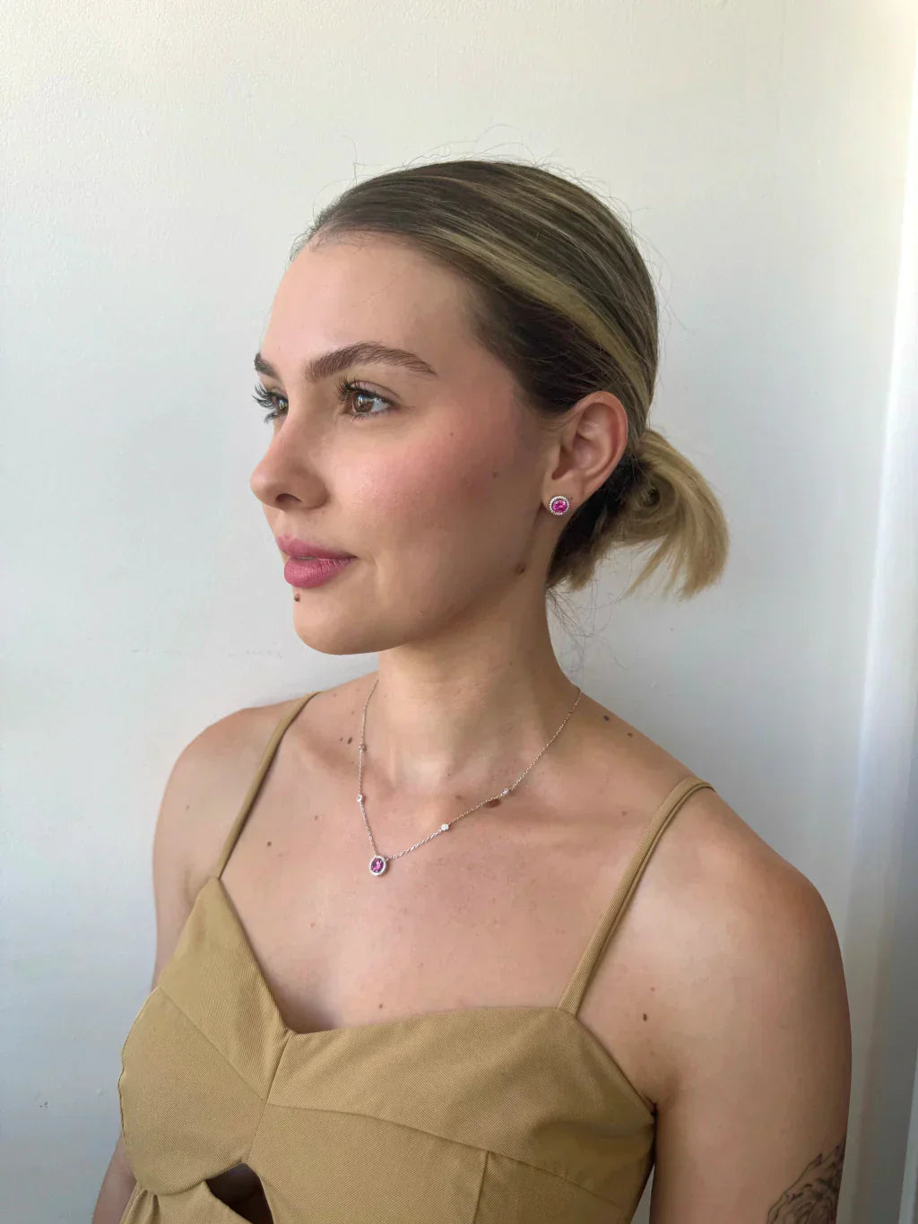 Conjunto de colar e brinco no formato redondo, com corrente modelo Tiffany (Zircônias na corrente).