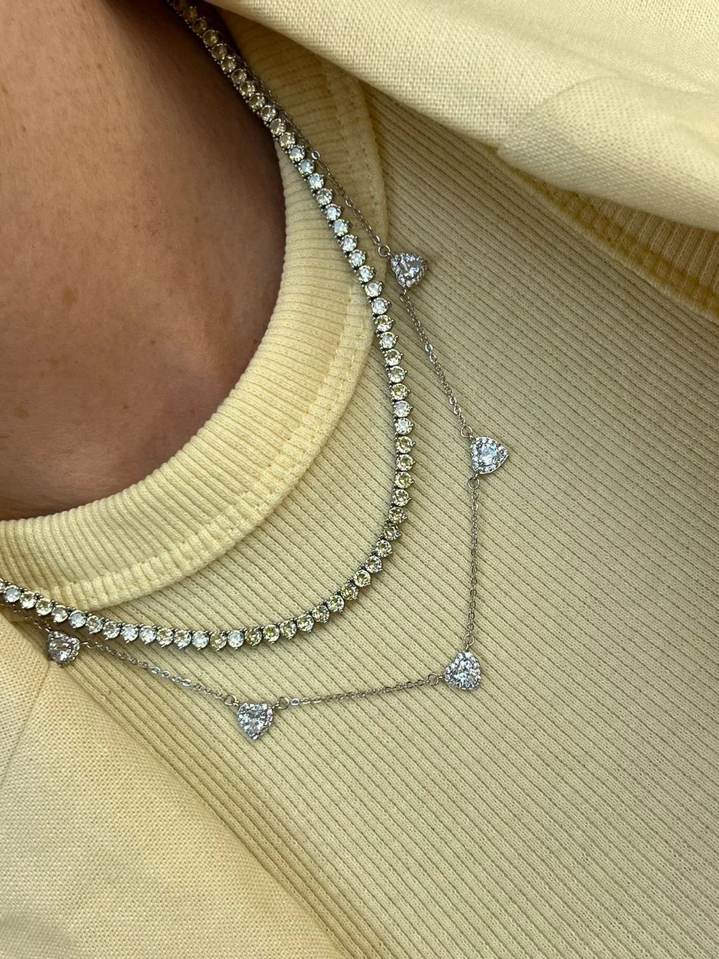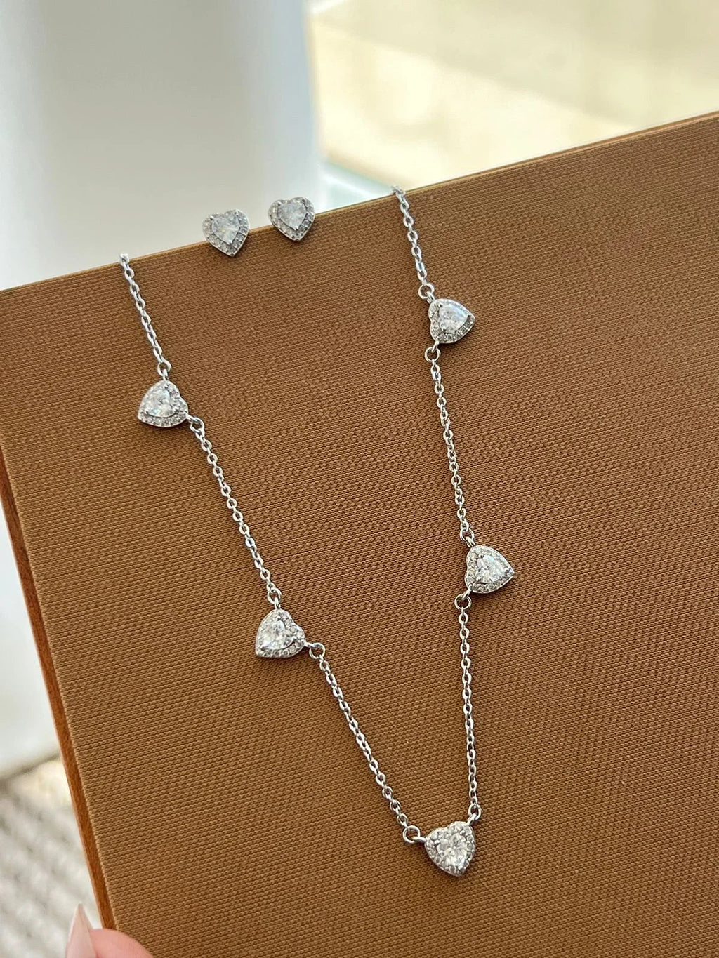 Conjunto com Mini Corações Cristal em Prata 925 Banho de Ródio Branco