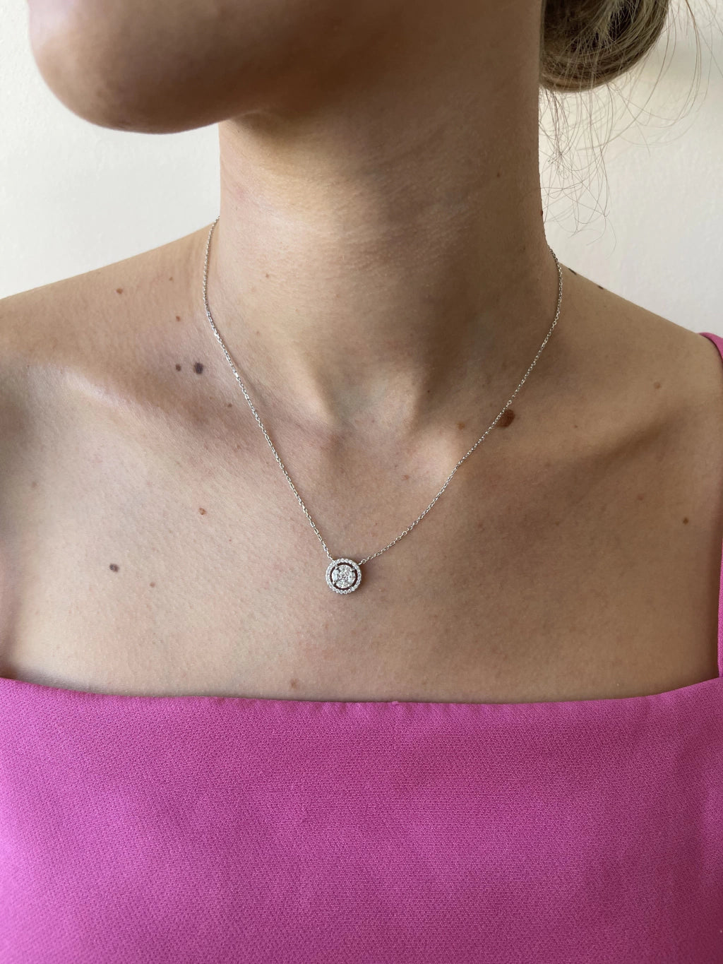 Conjunto Ponto de Luz, com cravação lateral em micro zircônias. Corrente: 40cm + 5cm de Extensor. Prata 925.