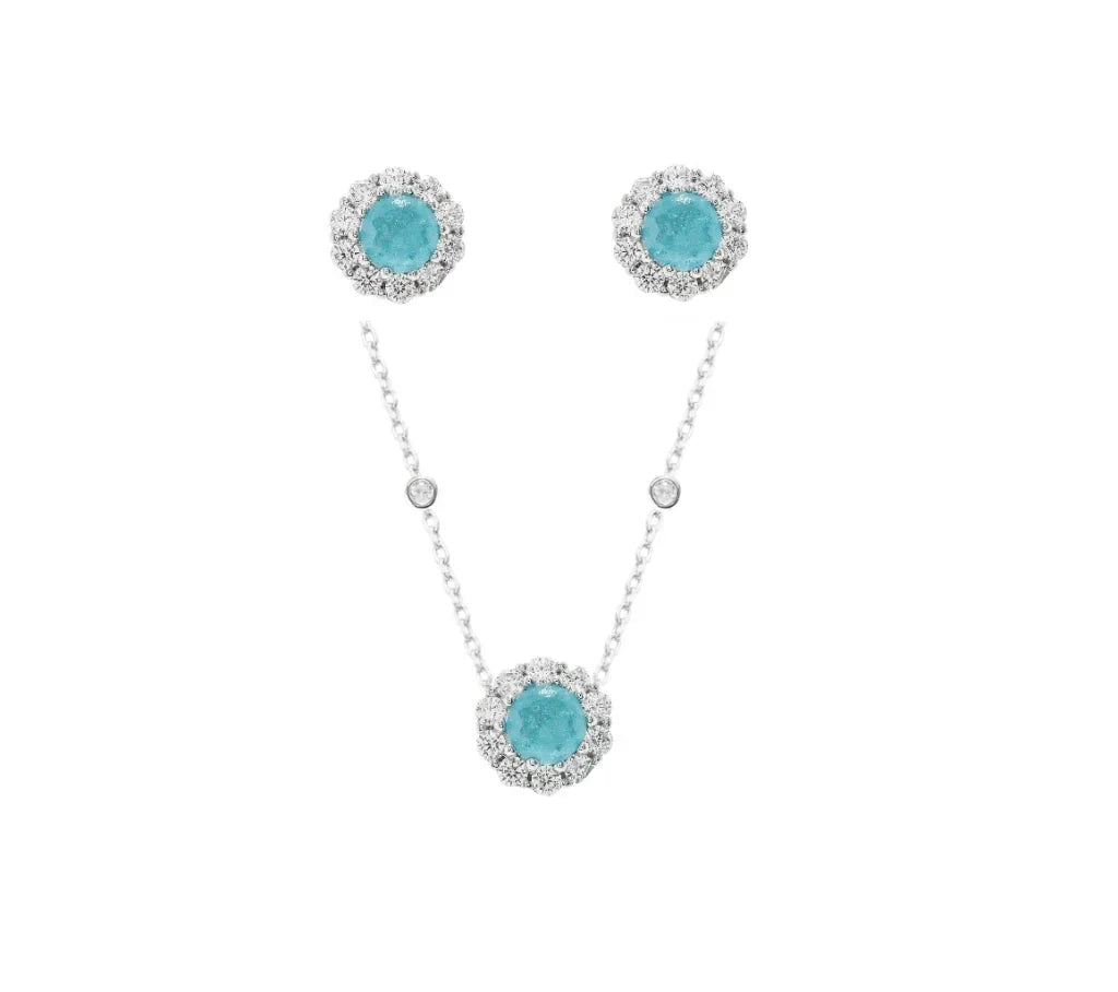 Conjunto em formato ponto de luz cravejado.