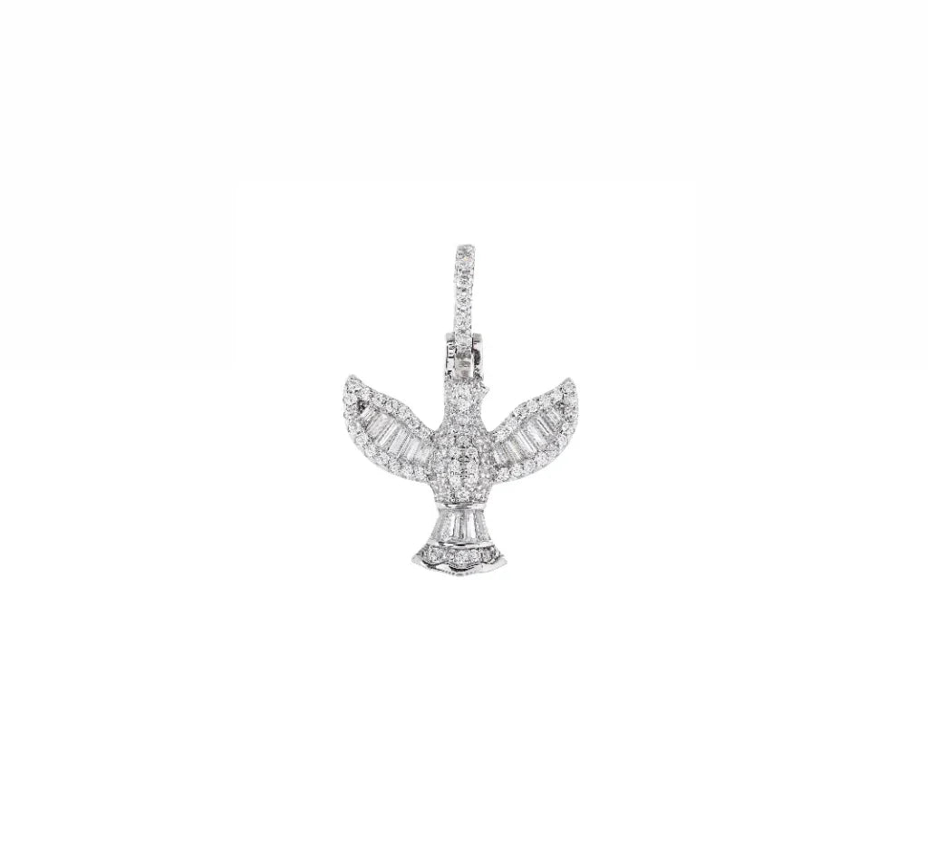Pingente em formato Espírito Santo - cravação baguete. Cor: cristal.