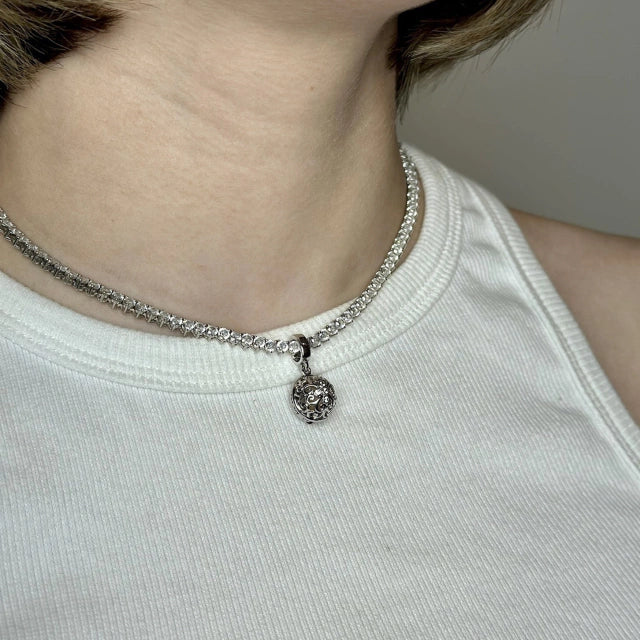 Pingente perfumeiro com detalhe cravejado em microzircônia e design vazado.