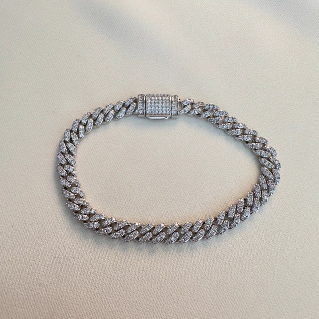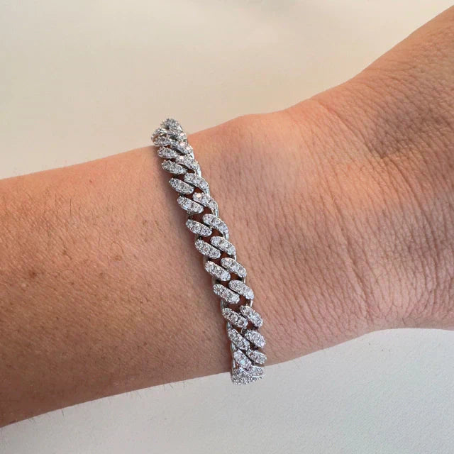 Pulseira corrente de 6mm elo é uma peça elegante e sofisticada que apresenta um design moderno e versátil. A corrente é composta por zircônias brilhantes que adicionam um toque de brilho e elegância à peça.