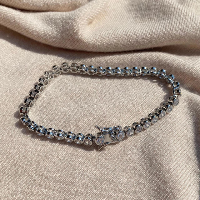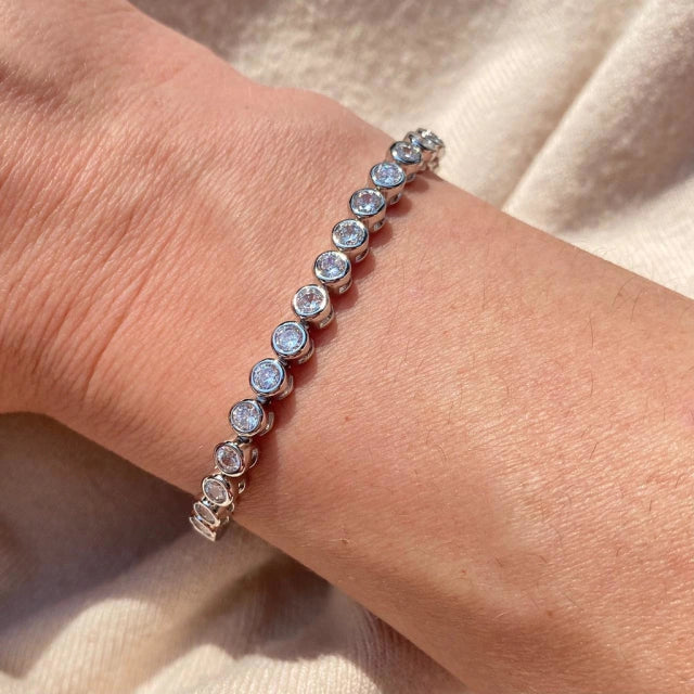 Pulseira Riviera bolinhas cravajado com zircônia e com banho de ródio.