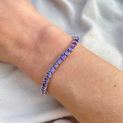 Pulseira riviera cravejado com zircônia lilás de 4mm e com banho de ródio.