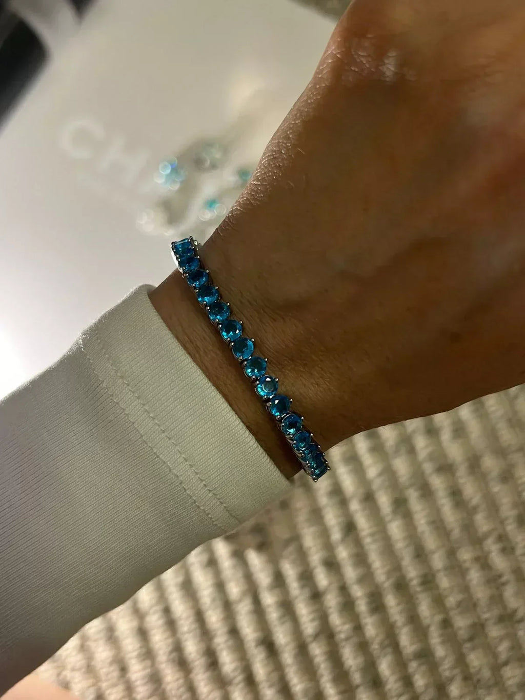 Pulseira Riviera Três Pontas Espinélio Azul (Fecho joia) em Prata 925 de Ródio Branco