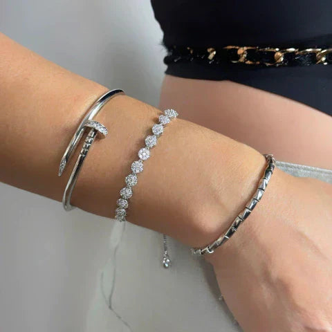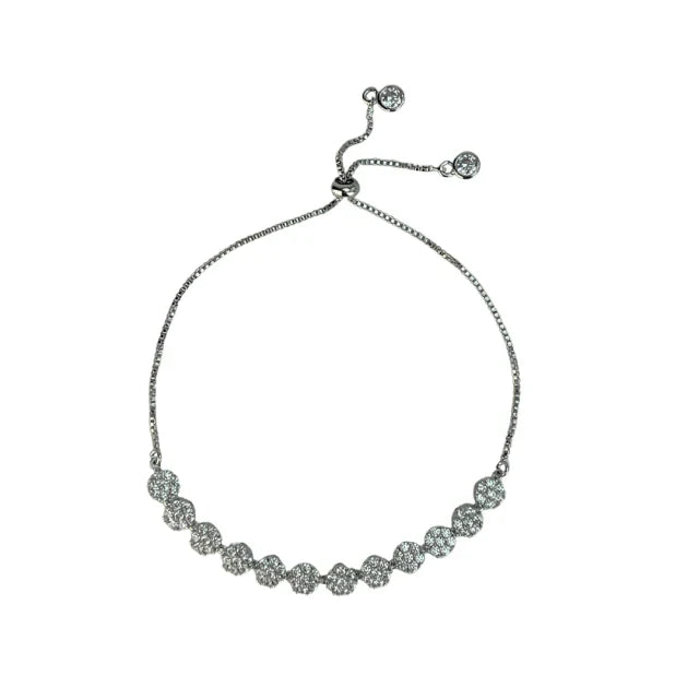 Pulseira semijoia banhado em ródio branco fechamento shambala e zircônias cravejadas na cor cristal