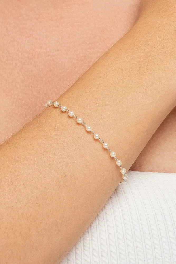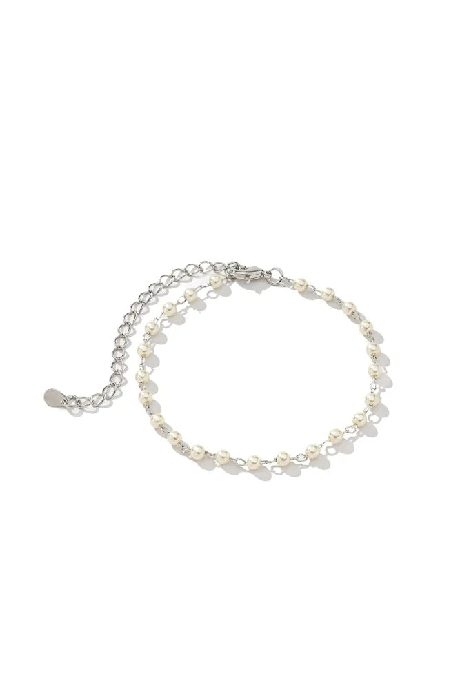 pulsera com banho em ródio branco e mini pérolinhasMaterial: Prata 925Pedra: Pérola BrancaMedida Aproximada: 16,5cm + 6cm de extensor