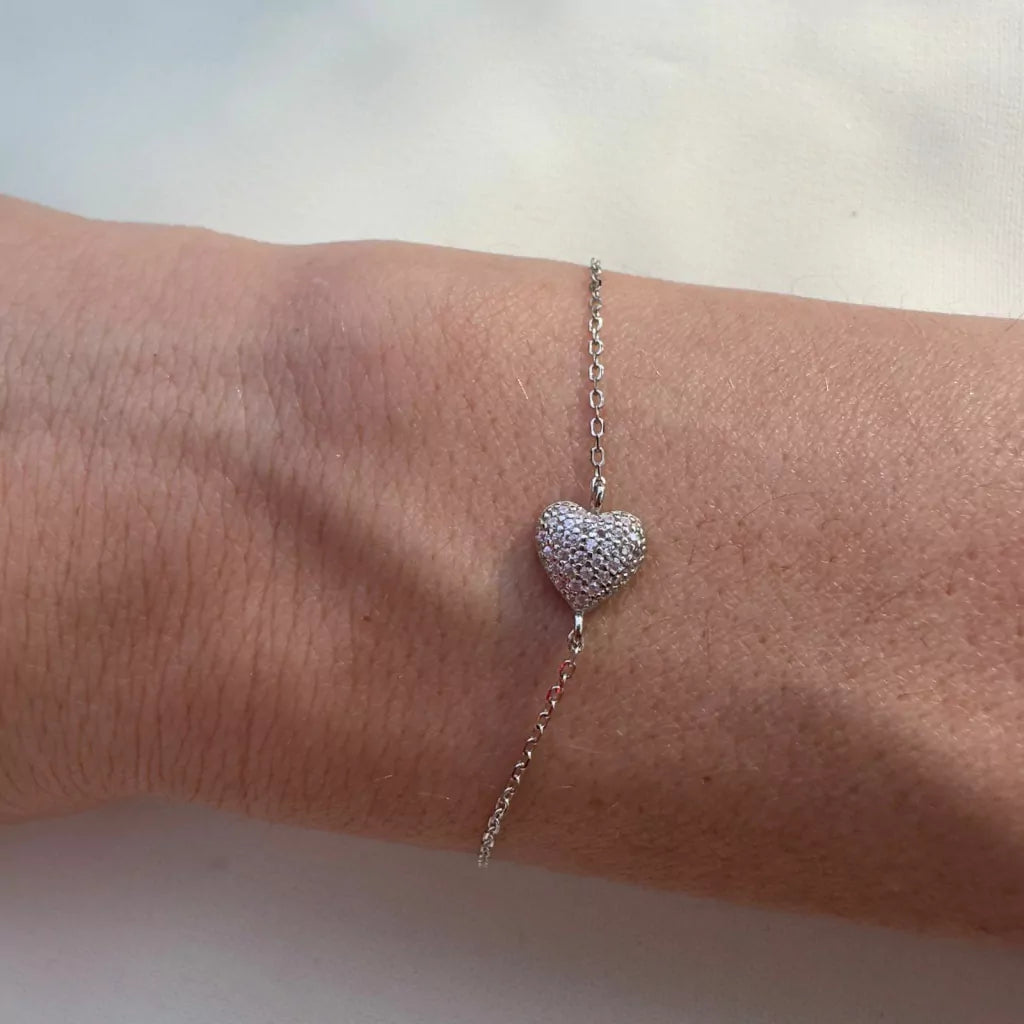 A pulseira com pingente de coração em prata com zircônia rosa é uma joia delicada e romântica. Esse tipo de pulseira é uma ótima opção para quem busca um acessório elegante e feminino, perfeito para complementar o seu look com um toque de brilho e charme.