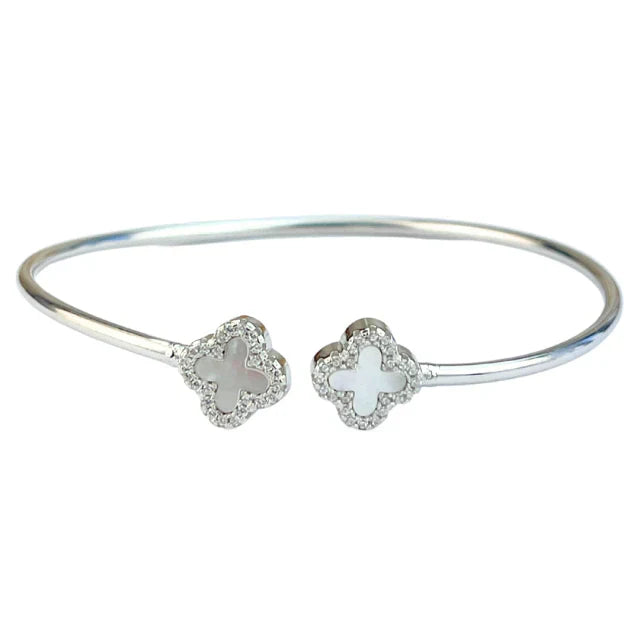Bracelete prata 925 com detalhe em trevo madrepérola cravejado em microzircônias.