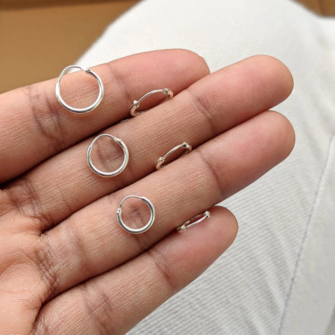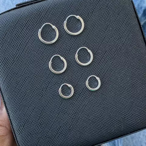 Trio de Brinco Argola Rebitado Fio Quadrado de Prata