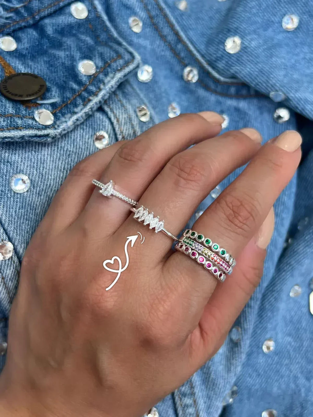 Anel Aparador de Aliança com Zircônia Cristal em Prata 925